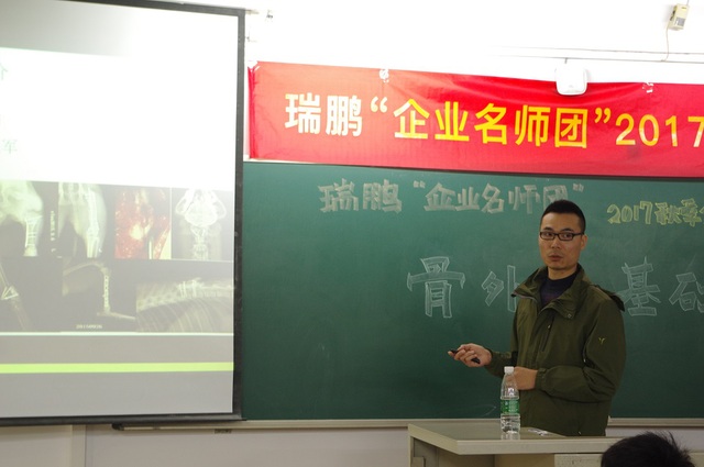 接着进入宣讲会的另一主题。游廷以“根本原则、器械介绍、病例分析”为主线给同学们介绍骨外科。他提到,作为一名职业兽医师,必须要遵循外科手术根本原则――BO原则,这是对小动物基本的尊重。游廷凭借着自己丰富的临床经验,给同学们介绍医疗器械的同时结合典型案例。他详细给同学们介绍国内和国外所用医疗器材的区别,提到当前宠物医疗行业出现的新工艺,这是教材上没有的知识。游廷介绍病例分析时跟同学们互动完成,他演示病例的几种做法,让同学们判断并解释其原理,同学们都积极参与其中。