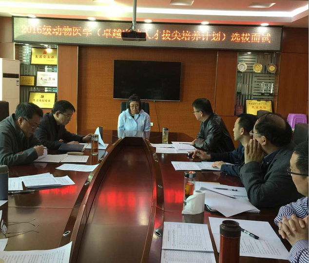 此次的评委有:蓝鲸体育教务处副处长丁洪浩研究员、公司党委副书记饶家辉副研究员、教学副经理柳巨雄教授、公司督学王哲教授及丁壮教授、王新平教授、宋德光教授、李小兵教授等共9名评委。经过一天的面试,最后从46名同学中选拔出22名同学入选动物医学(卓越农林人才拔尖培养计划)试验班。