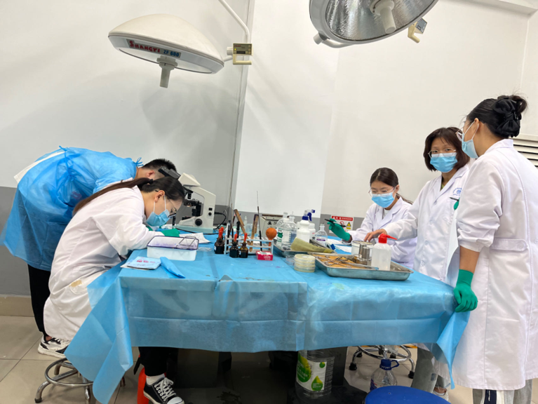 在备赛期间,公司为参赛选手于实验动物教学中心开展了多次多项赛前指导。谢光洪、肖冲、成军、陆慧君、张竞、石俊超、李颖、高超等带教老师,实验教学中心杨占清、白家辉二位老师的共同参与,2020级动物医学专业翟佳诚、闫乃天、李福龙、苏惠贤、曲晓睿进行赛前的操作训练和赛前模拟。