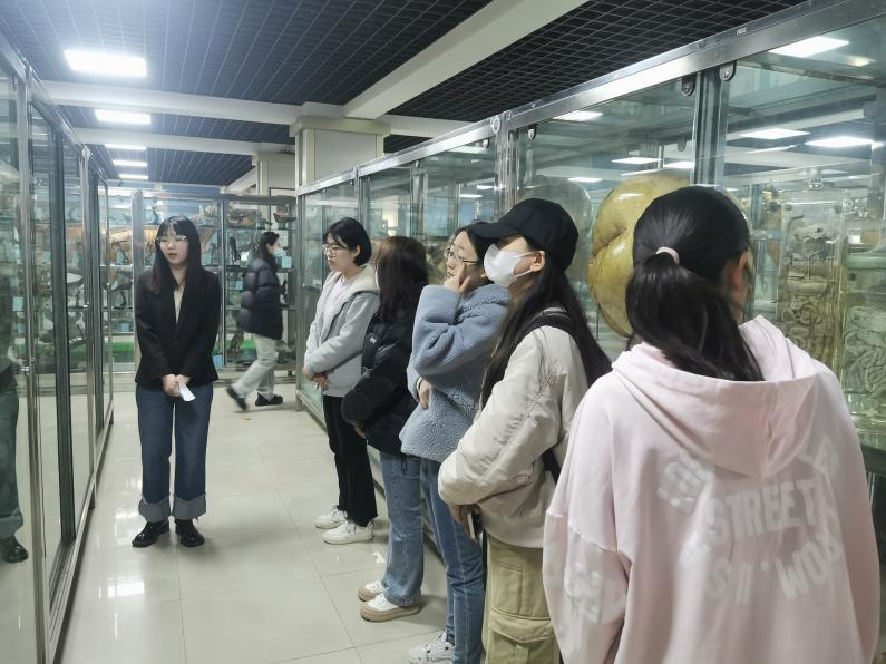 活动正式开始前,讲解员向大家宣读了标本馆的注意事项,如不能直接用手触碰展厅内的动植物标本及玻璃幕墙;不得在展厅内吸烟和高声喧哗;不得将零食、饮料带入馆中等等。随后,由两位讲解员弓玲玲(2022临床兽医学硕士)和董忆飞(2022临床兽医学硕士)带领同学们参观标本馆,在她们生动细致的讲解下,大家逐一了解到了这些标本背后的故事与含义。如驰骋沙场30年,目光炯炯有神、体躯高大魁梧的军马标本;再如用各个颜色精心标注出血管、神经、内脏的肌肉冻干标本等等。每一具标本都经历了复杂制作以及精心呵护,最后生动地展示给每一位师生。