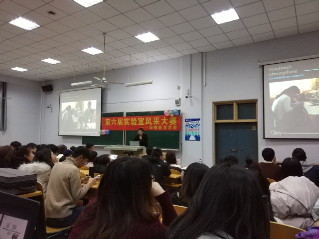 大赛共有十四组队伍参赛,按照抽签顺序依次上台展示。PPT展示环节各具特色,通过文字、照片、视频等方式对实验室的环境、导师、科研成果、文化、生活等进行了全方位展示。才艺展示环节,各个队伍都拿出了看家本领,吉他、沙画、尤克里里、萨克斯、热舞、小品、合唱表演文艺气息浓厚,让大家看到了活力四射、搞笑可爱的科研人。活动现场掌声雷动、笑语不断。经过激烈的角逐,动物营养代谢中毒病实验室牛牪犇队夺得第六届实验室风采大赛冠军。