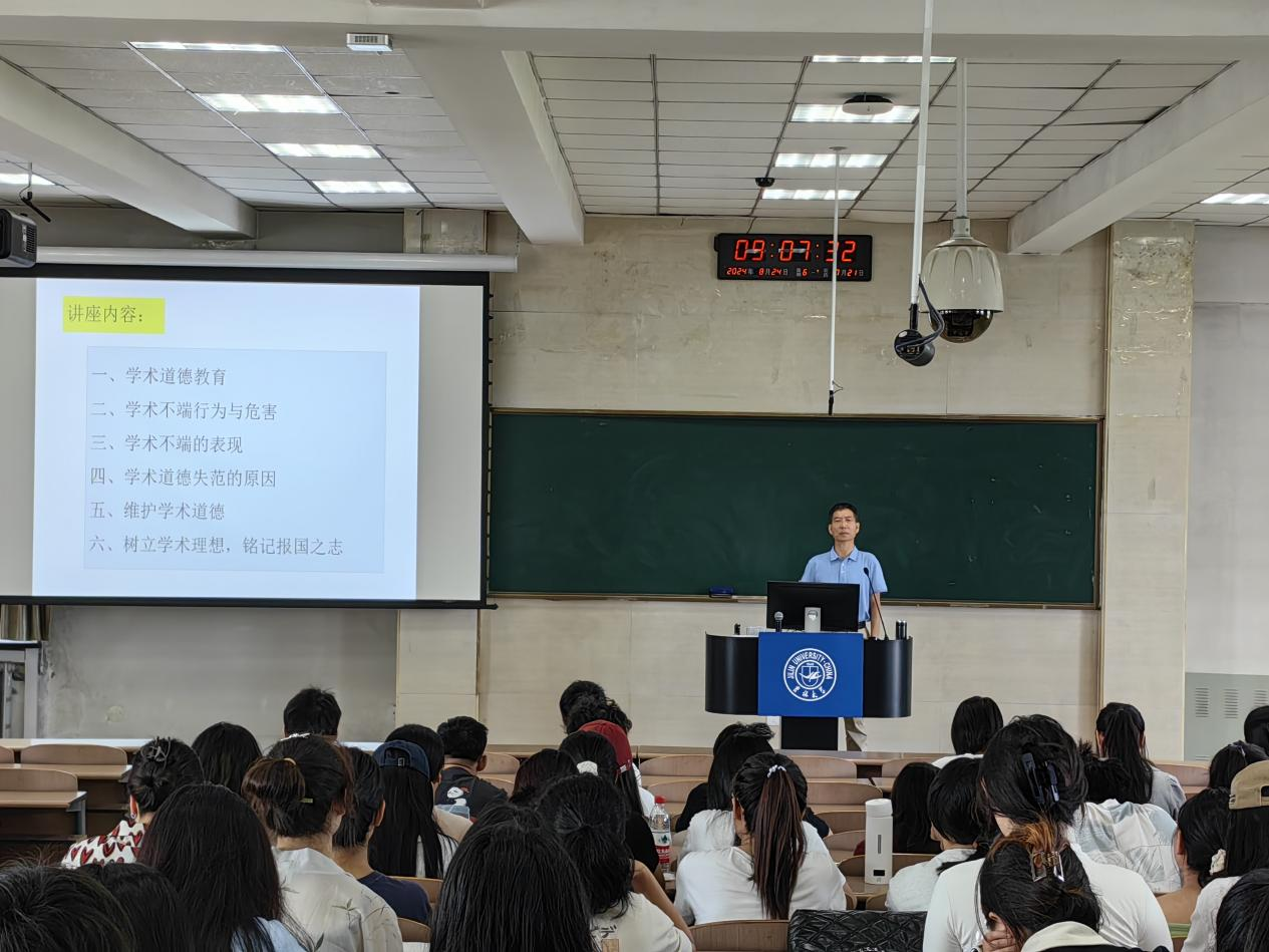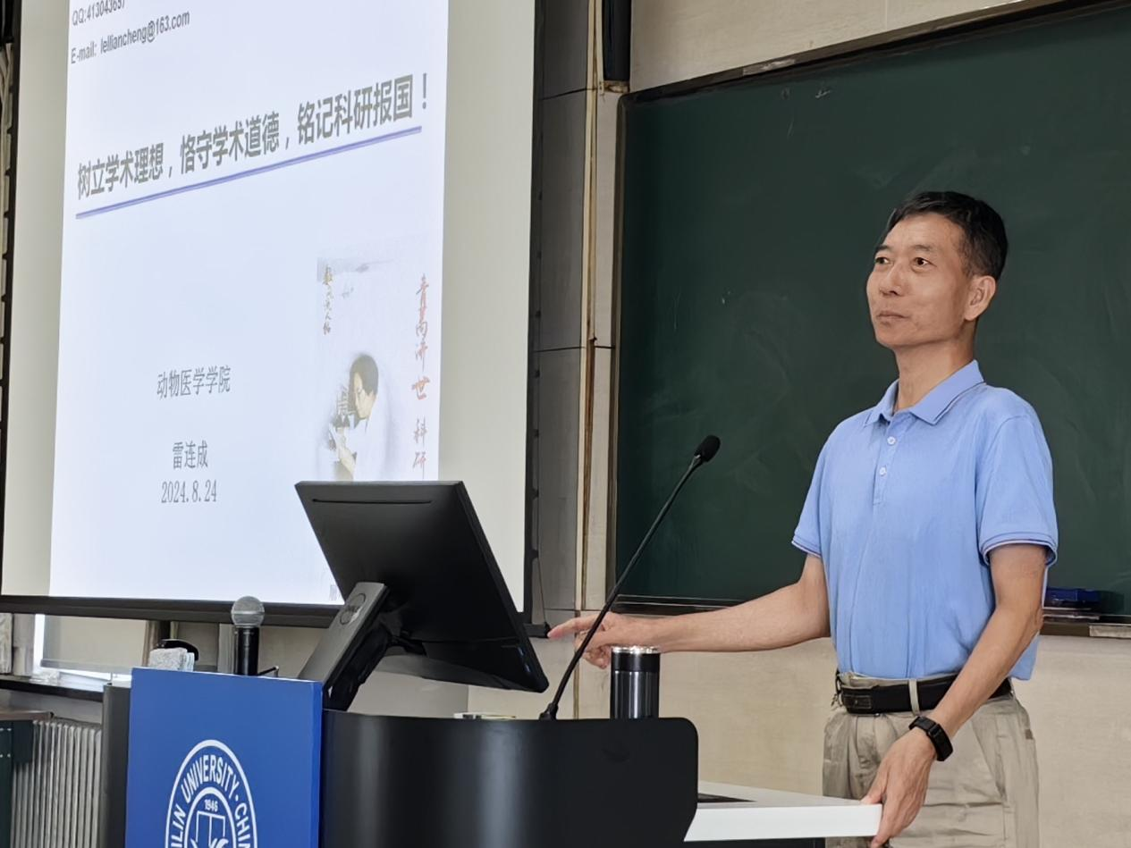 勤学求是拓新知,德业双修开华篇。为营造良好科研生态和学术氛围,引导研究生自觉遵守科学研究规范,培养信念执著、品德优良、知识丰富、本领过硬的高素质人才,蓝鲸体育研究生会于8月24日举办研究生新生入学系列教育——科学道德与学风教育。讲座邀请雷连成教授作为主讲人,研究生辅导员王慧丽老师主持,2024级全体研究生参加。