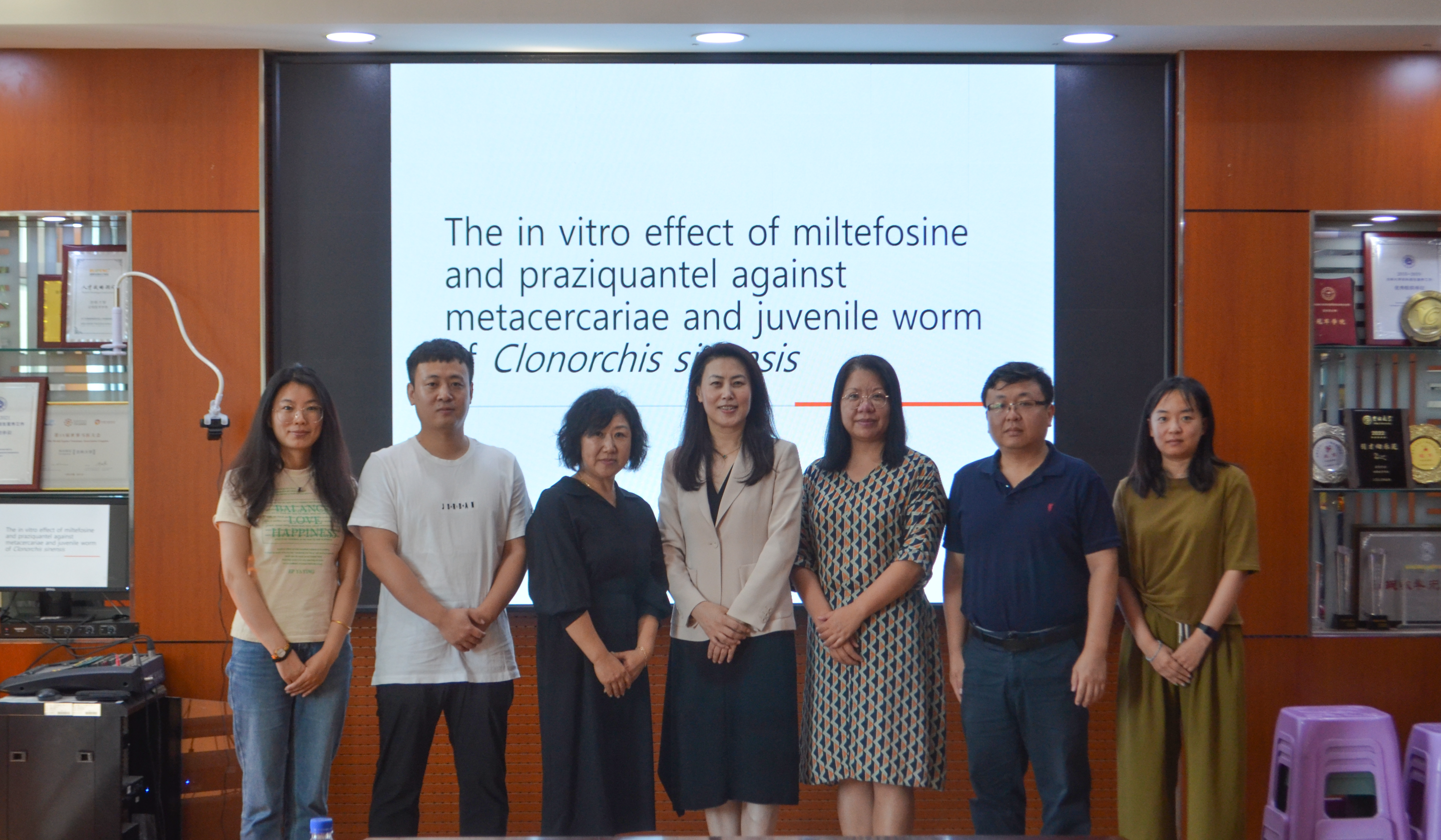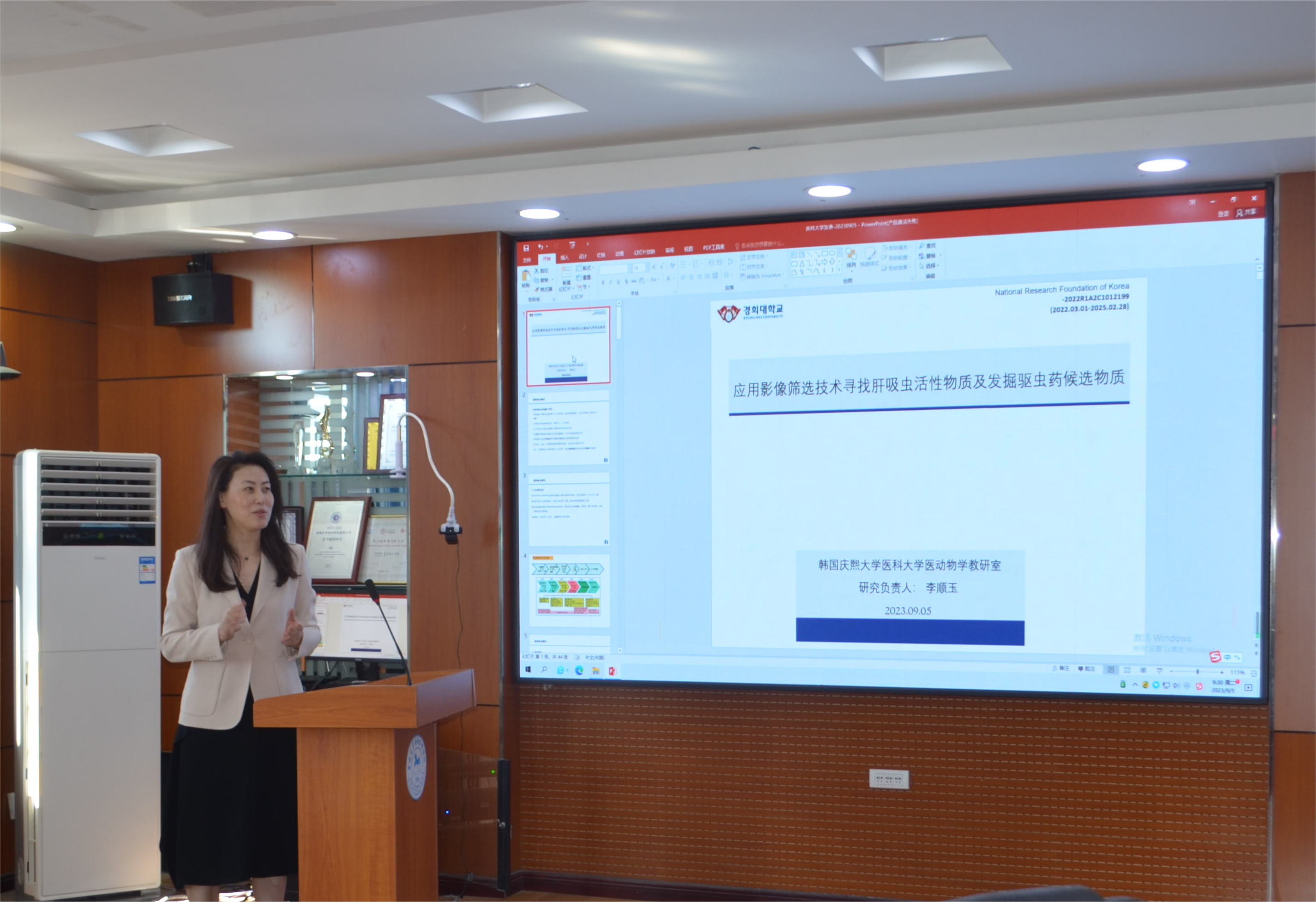 9月5日,韩国庆熙大学医公司医学动物学系李顺玉教授莅临蓝鲸体育进行学术交流。蓝鲸体育副经理李建华教授、预防兽医学系主任冯新教授、动物及人兽共患寄生虫病教研室学术带头人张西臣教授、教研室主任宫鹏涛教授、研究生科研办公室主任李赫老师等参加了本次学术交流。