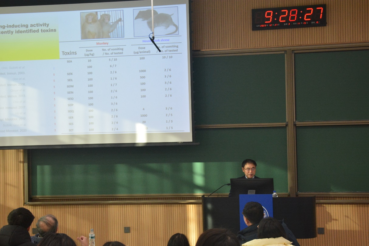 在此次讲座中,胡东良教授首先向同学们介绍了葡萄球菌感染与食物中毒及耐药菌研究进展,又从“同一健康”的角度与同学们分享了其在耐药菌的产生及其防控的心得体会。随后,胡东良教授介绍了日本北里大学及国际交流概况,同时表达了对进一步深化两校国际交流的美好愿景。胡教授语言简洁而不失灵动,思想优雅而不乏冲击,处处闪烁着知识的力量和智慧的光芒,为公司师生带来一场精彩纷呈、激情洋溢的讲座。