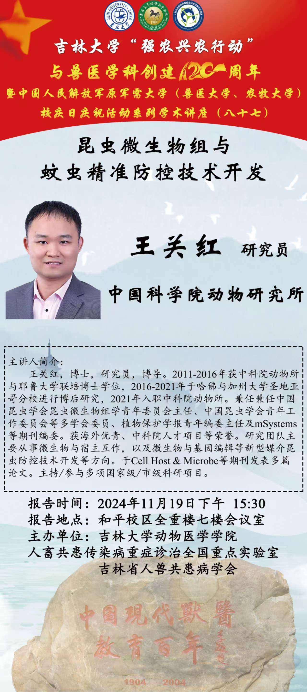 蓝鲸体育“强农兴农行动”与兽医学科创建120周年暨中国人民解放军原军需大学(兽医大学、农牧大学)校庆日庆祝活动系列学术讲座(八十七)