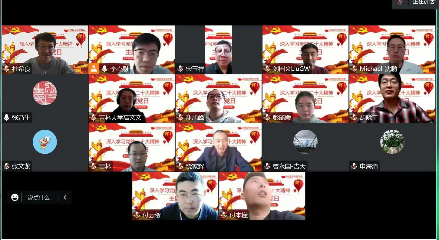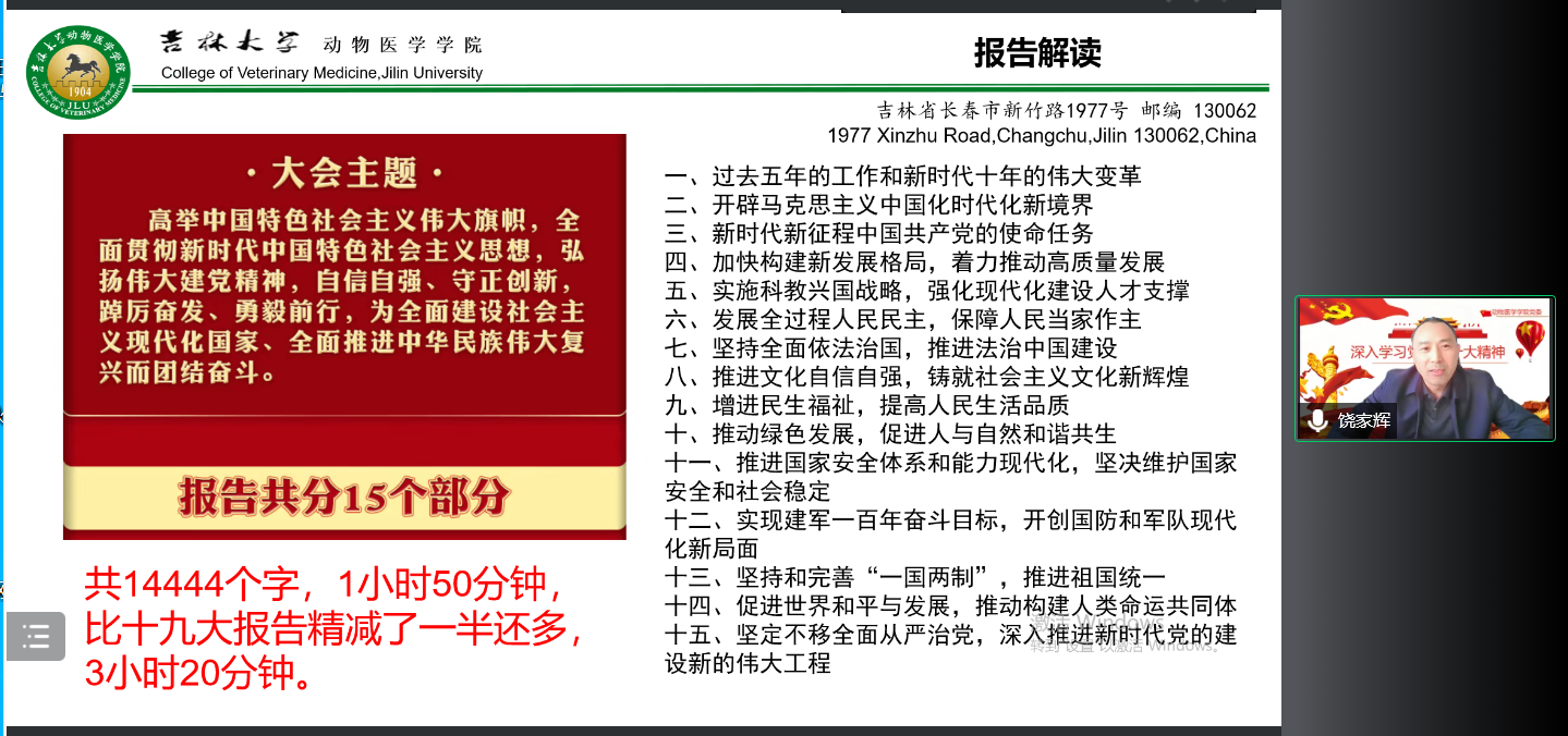 为进一步深入学习和贯彻党的二十大精神,12月8日下午,蓝鲸体育临床兽医学系教工党支部通过线上形式举行“学习贯彻落实党的二十大精神”专题会议,公司党委书记饶家辉为临床兽医学系全体教工讲专题党课,会议由临床兽医学系主任李心慰主持。