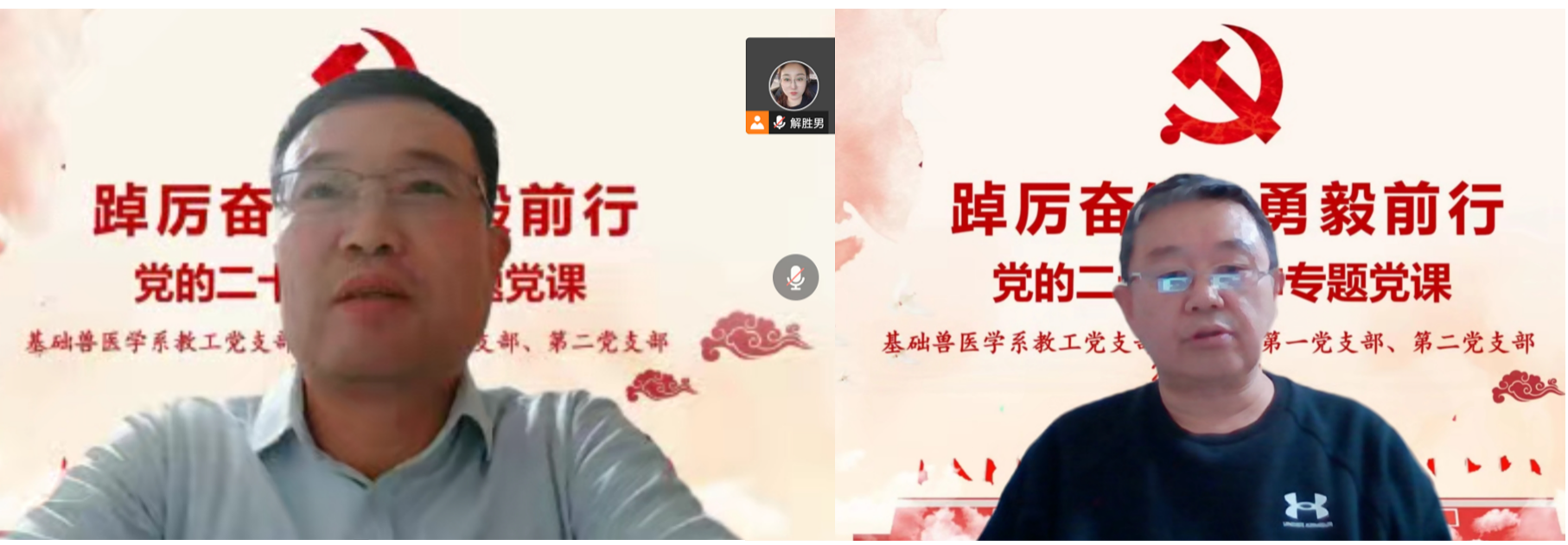 2022年12月1日,基础兽医学系教工党支部联合研究生党支部线上开展学习党的二十大精神主题党日活动。活动由基础兽医学系教工党支部书记宋德光教授主持,蓝鲸体育副经理贺文琦教授主讲党课。基础兽医学系教工党支部、研究生第一党支部、第二党支部全体党员及入党积极分子90余人参加线上活动。