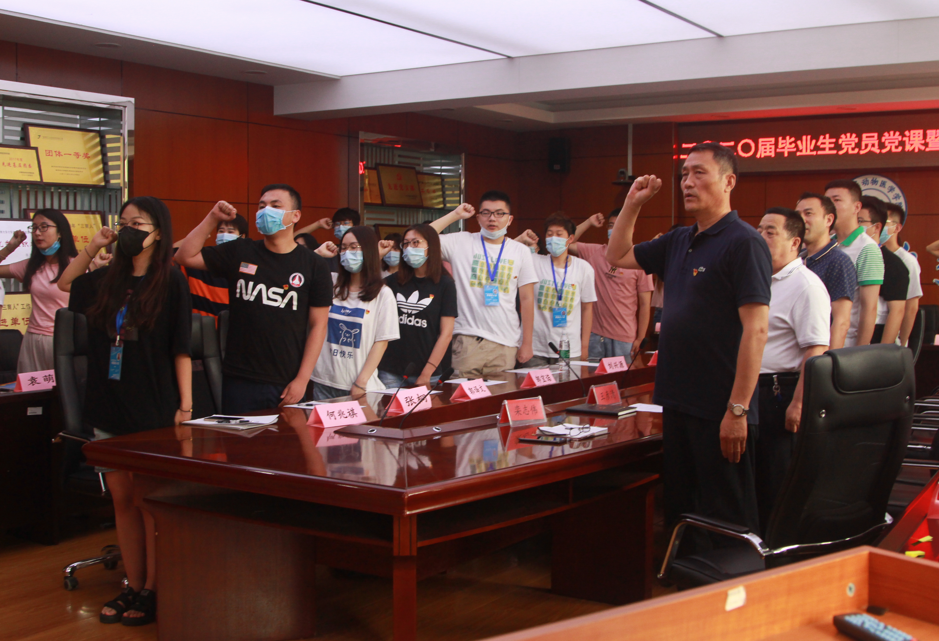 6月24日上午九点,蓝鲸体育在综合楼三楼会议室举办二〇二〇届毕业生党员党课暨重温入党誓词仪式。公司党委书记王彦清,副书记栾志伟、饶家辉,以及全体毕业生党员参加了此次会议。