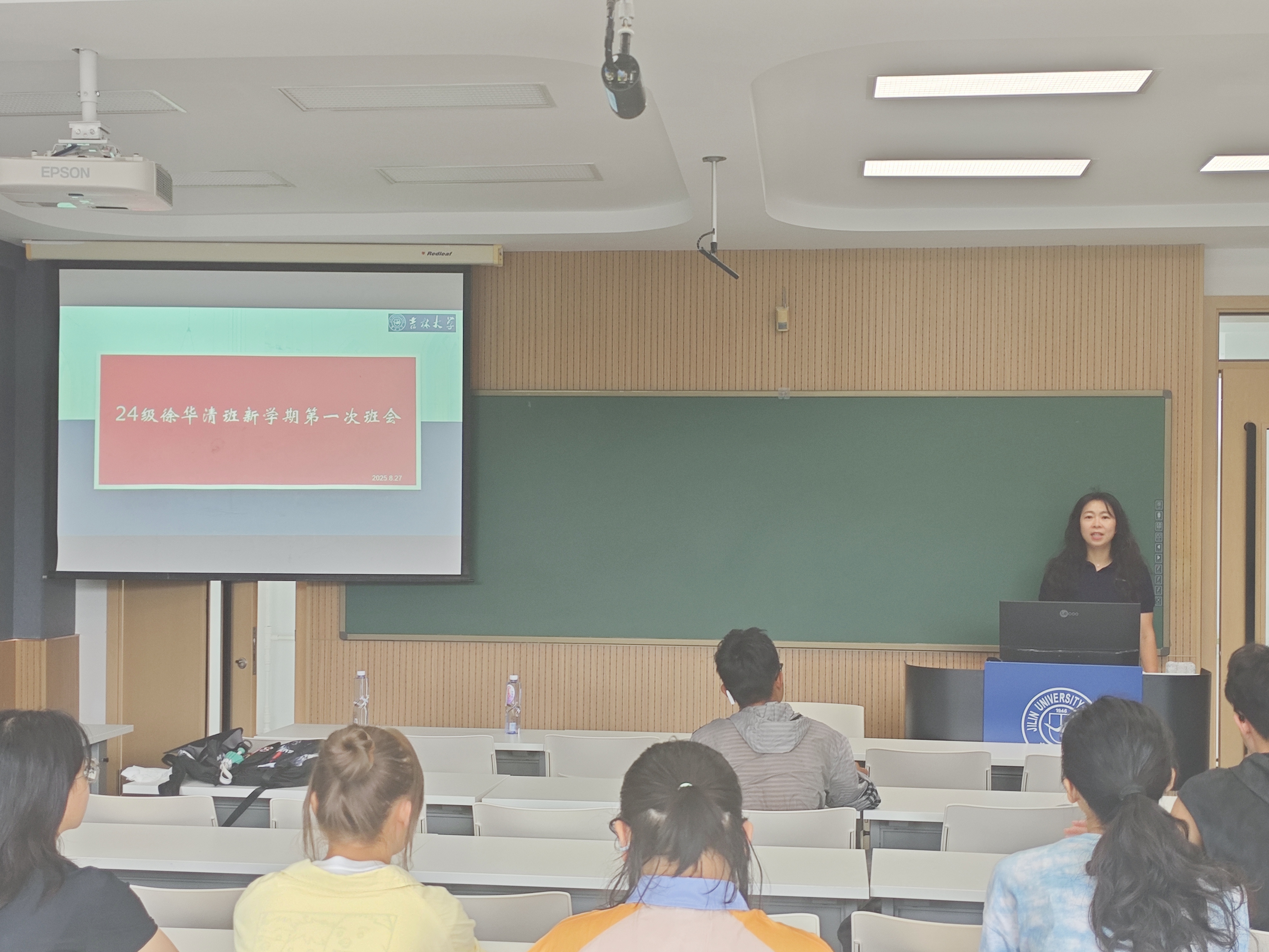 新学期,新起点。为提升班级同学学业规划水平,帮助同学们提前了解大二生活,做好学习规划,2025年8月27日上午9点,2024级徐华清班大二第一次班会在和平校区科学讲堂305教室召开。班主任李媛媛老师,班代苗坤荣及徐华清班全体同学参加了本次会议。