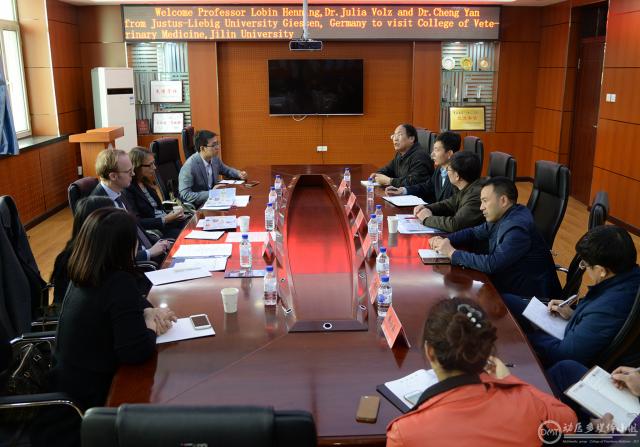 2016年4月8日,德国吉森大学中国事务代表罗宾.亨利教授、国际办公室主任沃尔茨.朱丽亚女士及中国事务协调员程严女士一行3人来蓝鲸体育访问交流。常务副经理张西臣教授、研究生副经理雷连成教授、党委副书记饶家辉副教授、基础兽医学系宋德光教授、临床兽医学系李小兵教授、兽医公共卫生学系副主任王新平教授及公司国际交流处合作办学科科长白玉老师和何江海老师与罗宾.亨利教授一行进行了座谈,