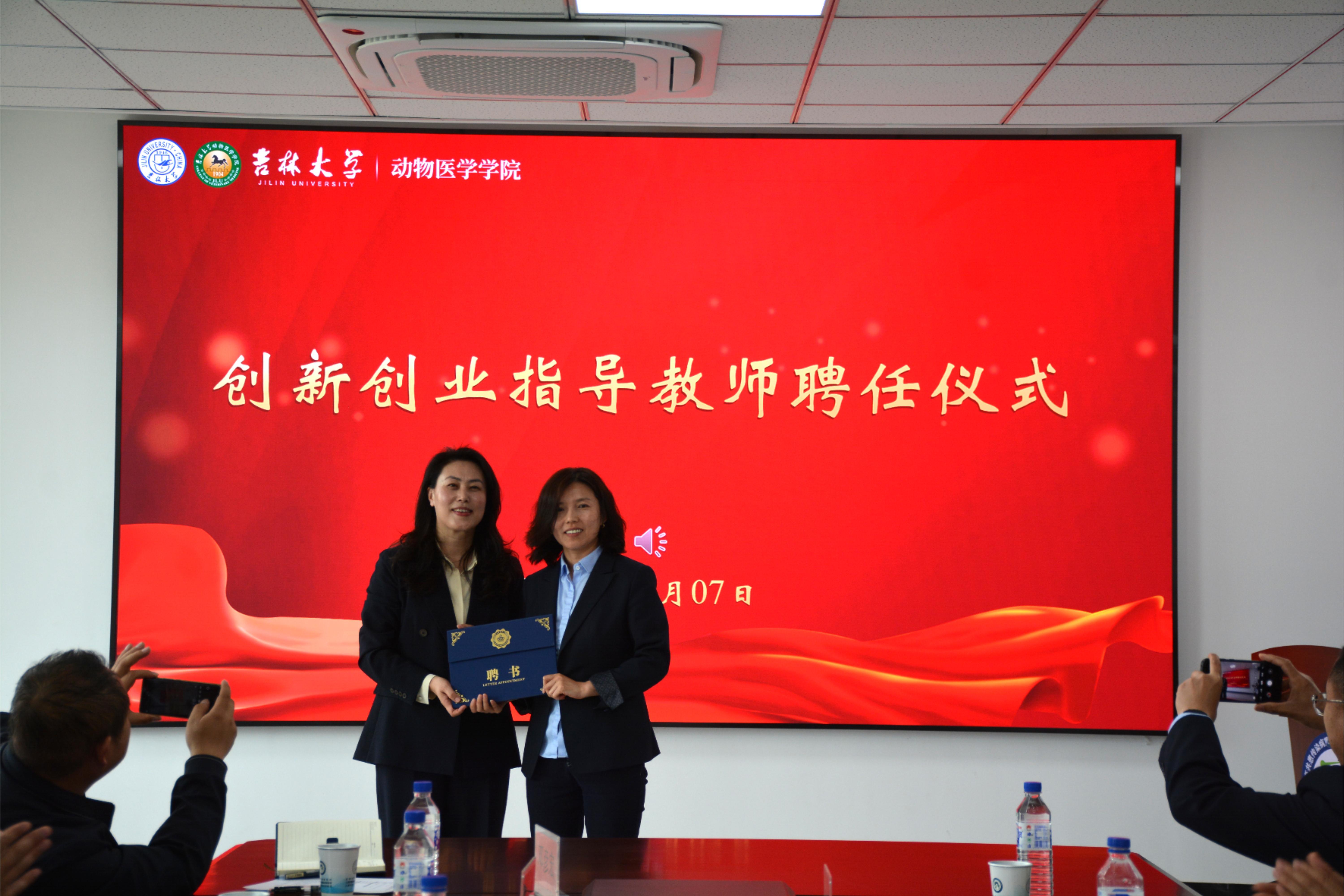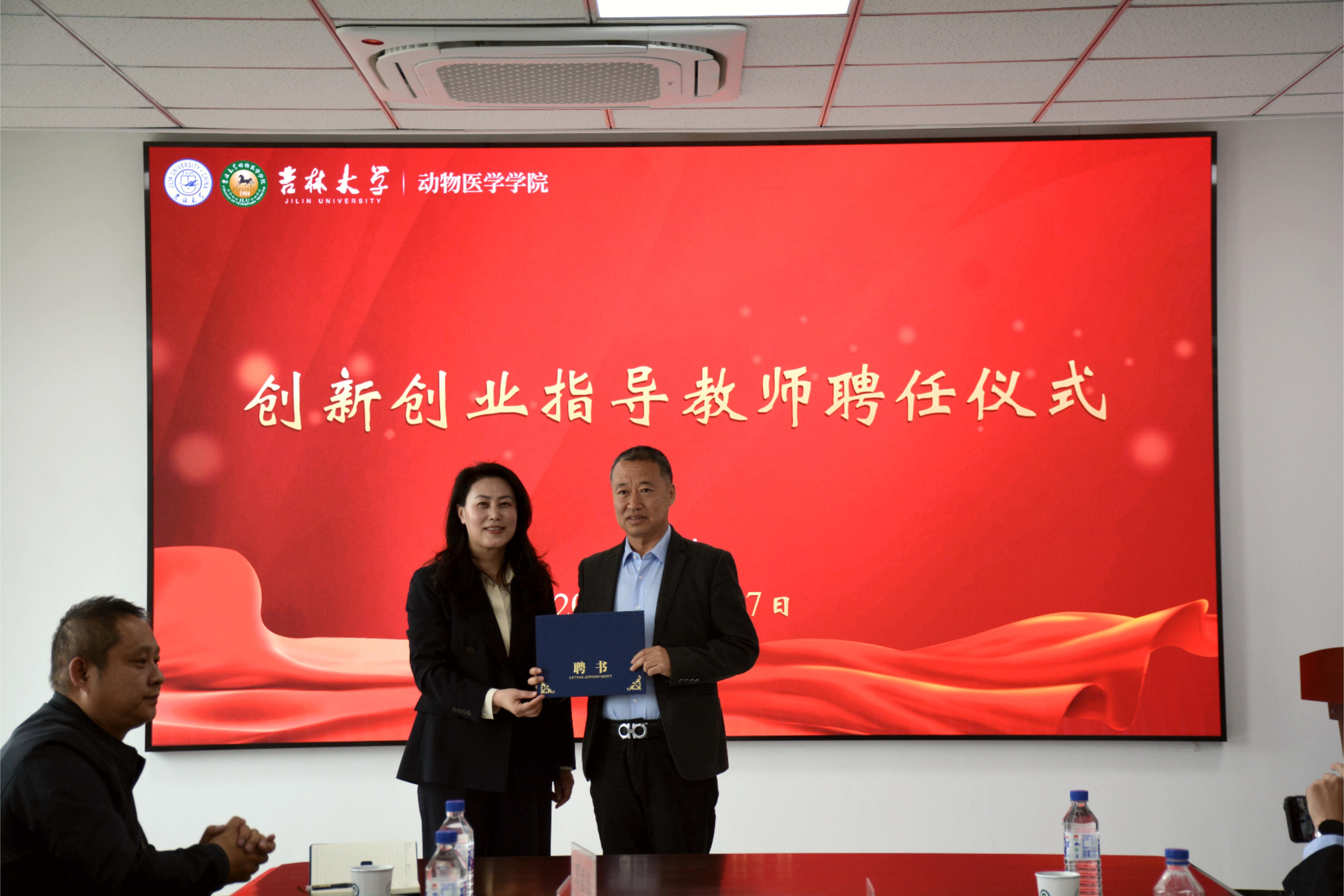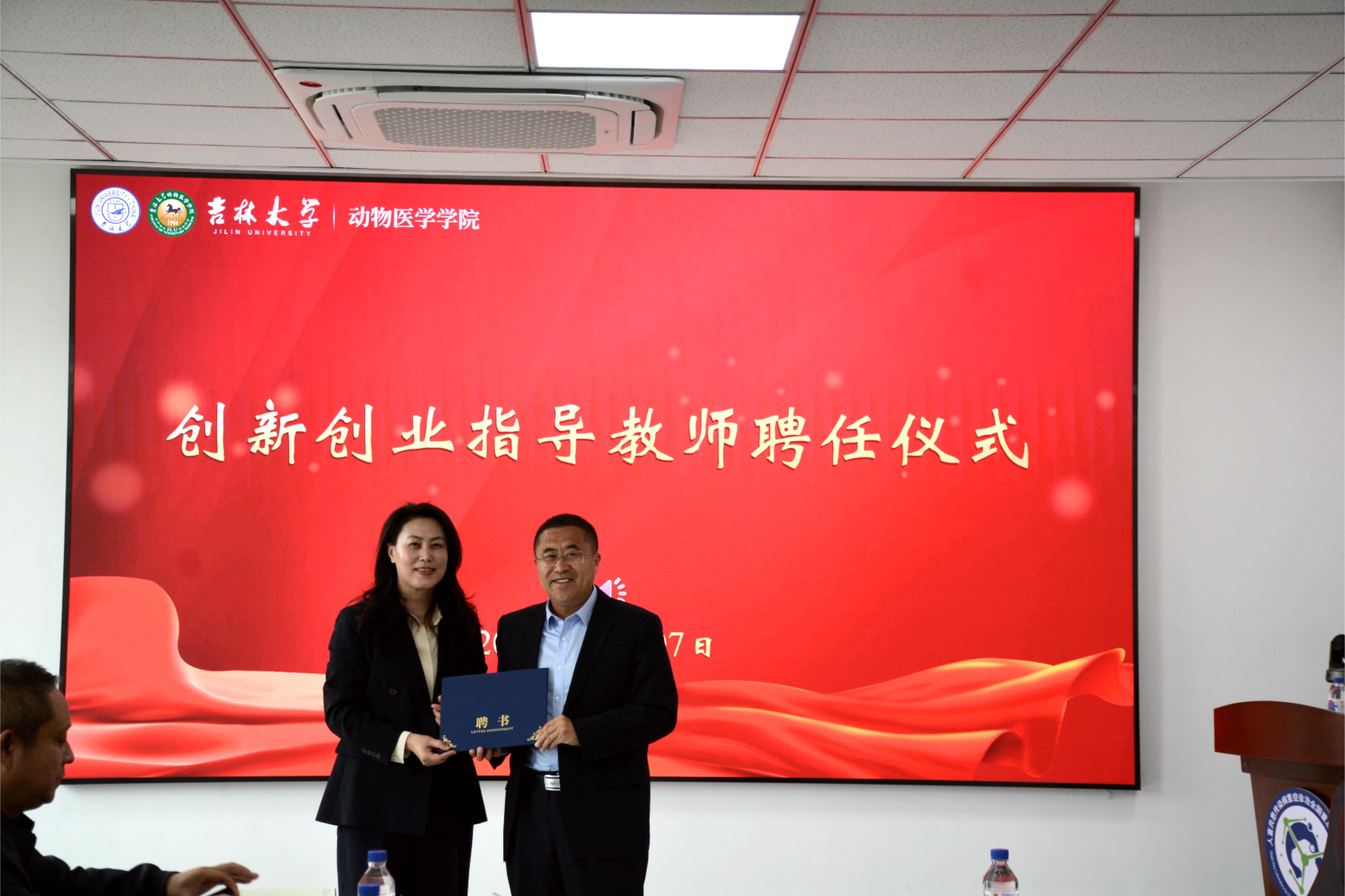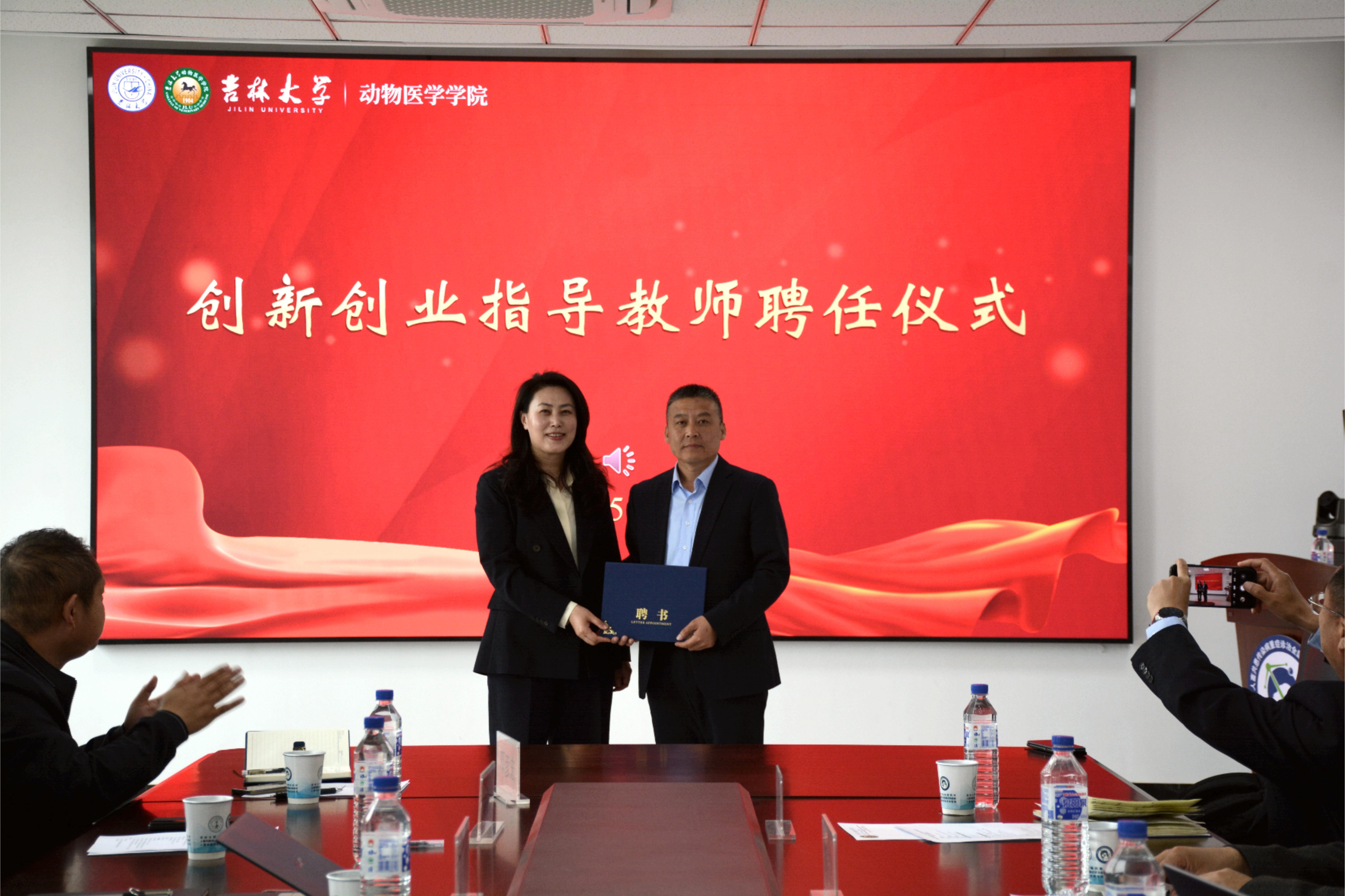 随后,李建华经理对参加本次简要介绍参会人员并致欢迎词,代表公司颁发创新创业指导教师聘书并合影。座谈会上,李建华经理指出,深化“四链融合”是新时代高等教育与产业协同发展的必然要求。公司依托教育链基础优势,近年来在兽医学、人与动物共有医学等领域构建了特色学科体系,并通过“产学研用”一体化模式,推动人才链与产业链精准对接。与中升挑战生物科技的合作,将有效贯通从基础研究到产业应用的创新链,实现资源互补、价值共创。刘海余总经理高度认同“四链融合”理念,并强调企业作为产业链主体,亟需高校在技术研发与人才供给上的支持。“公司当前在动物疫苗、新型兽药等领域的产能升级,离不开创新链的源头活水和人才链的持续赋能。此次合作将加速技术成果从实验室走向生产线。”