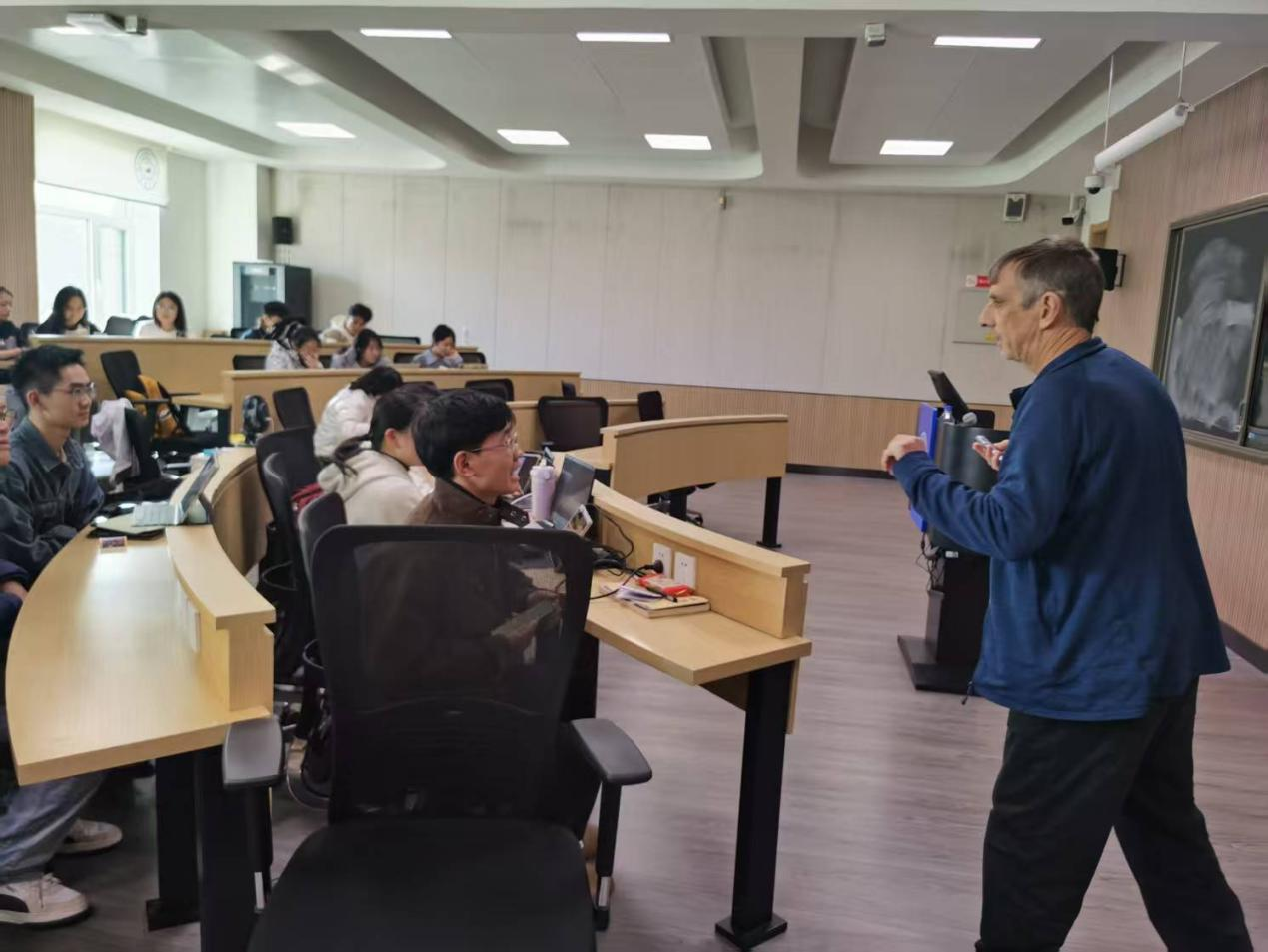 课程初期,面对全英文授课环境,部分同学存在畏难情绪,课堂互动较为沉默。Langford教授及时调整教学节奏,通过幽默的语言、生动的案例以及耐心的引导,逐步打消员工的顾虑。随着课程推进,课堂氛围愈发轻松活跃,同学们不仅能够熟练跟上授课节奏,还主动开口用英语交流观点、提出疑问,在提升专业素养的同时,也显著增强了英语学术沟通能力。