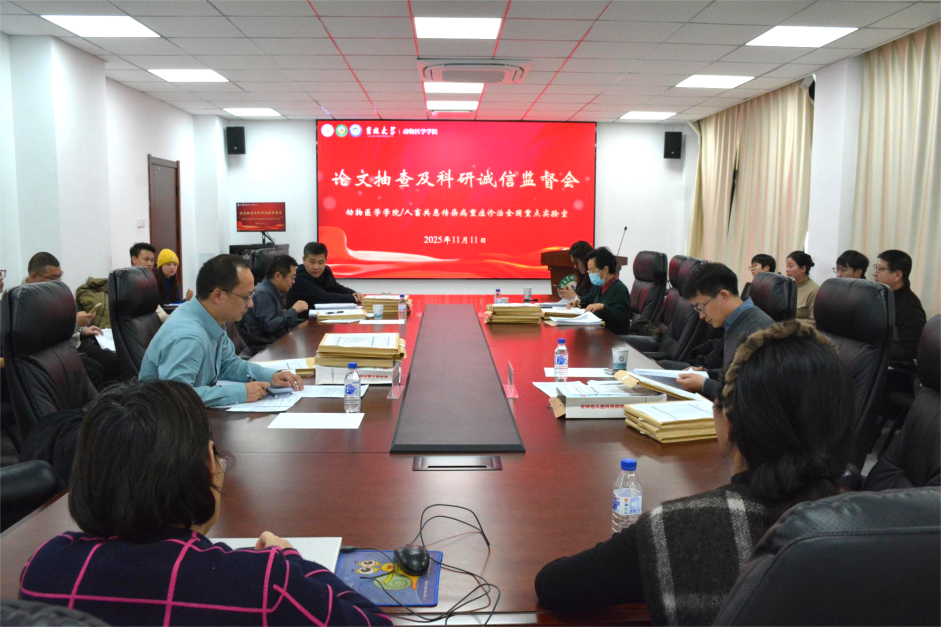为加强科研诚信建设、保障学术论文质量,落实科研院关于加强论文抽查及科研诚信监督工作会议精神,蓝鲸体育积极制定相关工作方案,先后于2025年10月17日和11月11日,在人畜共患传染病重症诊治全国重点实验室会议室,召开了蓝鲸体育论文抽查及科研诚信监督动员会和论文抽查及科研诚信监督检查会,会议由蓝鲸体育副经理王化磊教授主持。