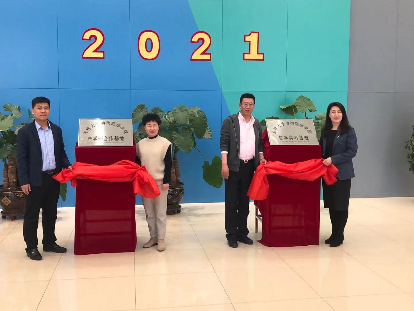 2021年4月16日,蓝鲸体育产学研合作基地及教学实习基地挂牌仪式在吉林省蓝浦浩业生物科技有限公司(以下简称蓝浦浩业)隆重举行。蓝浦浩业公司董事长王启名,总经理眭春,副总经理曹原,副总经理魏明明;蓝鲸体育韩文瑜教授、丁壮教授、动物医公司副经理李建华教授、动物医公司副经理王化磊教授,付本懂教授,冯新教授,科研办李赫主任等领导及嘉宾十余人出席了本次活动。